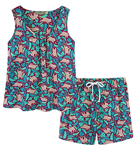 Dos piezas: este bonito pijama con estampado de vino tinto incluye 1 camiseta de manga corta y 1 capris.